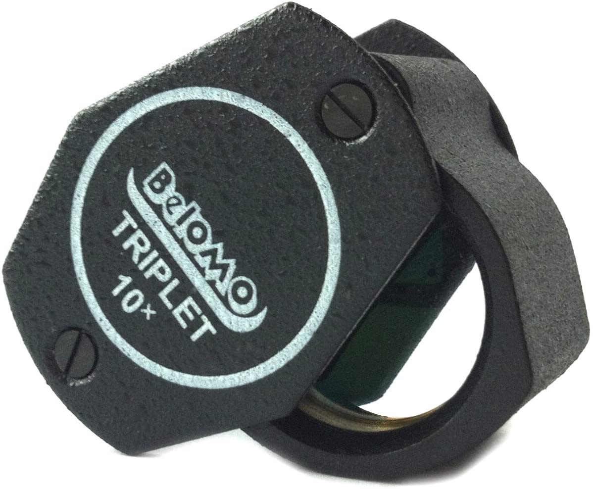 BelOMO 10x Triplet. Jewelers Loupe Magnifier 21mm (.85"). Optical Glass with Anti-Reflection Coating for a Bright, Clear and Color Correct View. Foldable Loupe for Gems, Jewelry, Coins and TrichomesThe BelOMO 10x Triplet Loupe Magnifier is an extremely high-quality achromatic magnifying lens manufactured by the Belarusian Optical Mechanical Association (BelOMO). The BelOMO 10x is the favorite and most frequently recommended 10x power loupe of geologists, rockhounds, gemologists, macro photographers, numismatists, entomologists, and philatelists around the world.