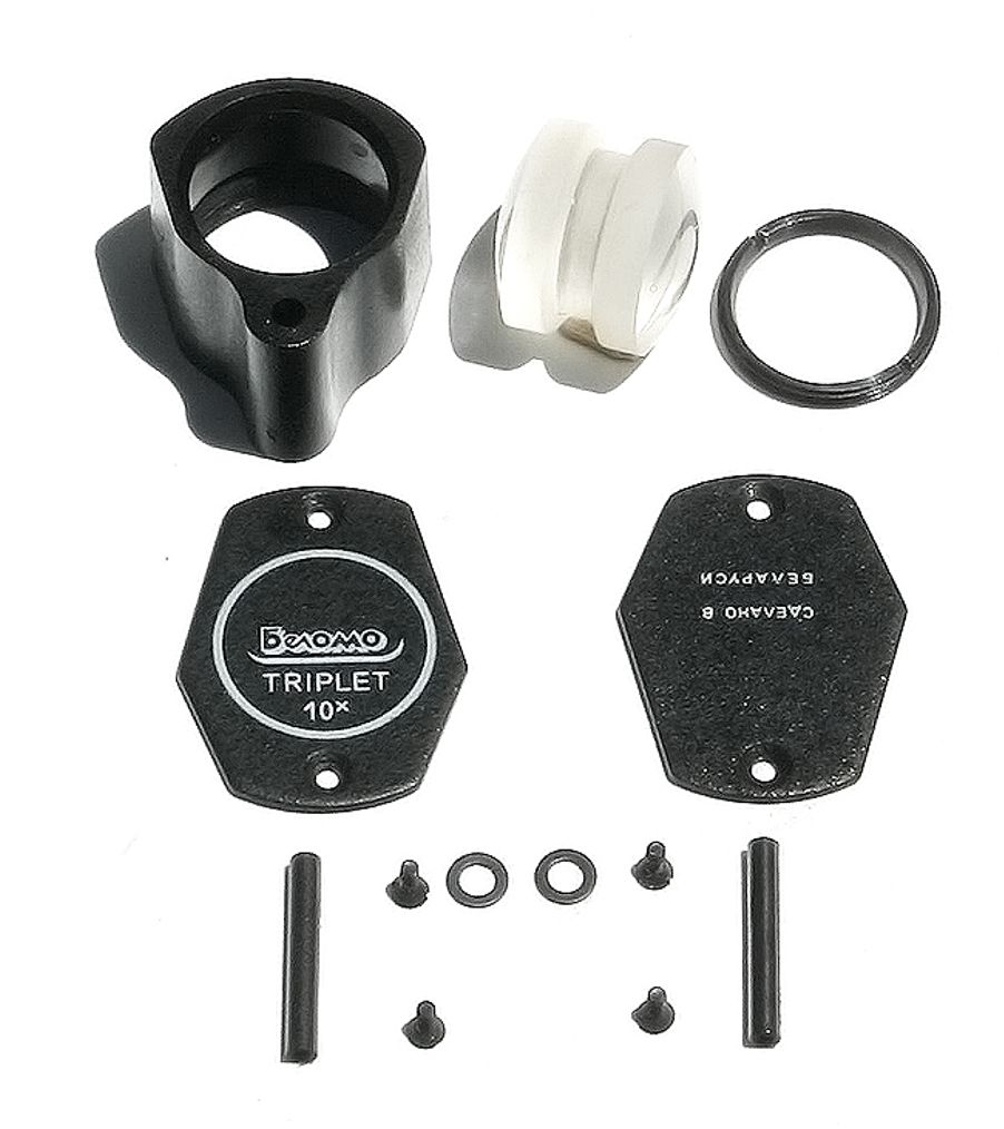Triplet means three lenses made of different types of optical glass bonded together and designed that, together, they straighten out the light that comes into the front of the loupe lens so that it's the same when it leaves. BelOMO Triplet 10x magnifying loupe has three achromatic, color correction, anti-reflection lenses that make it possible to see the image as precise and clear as in the original. Due to the presence of three lenses the BelOMO loop is called a triplet.